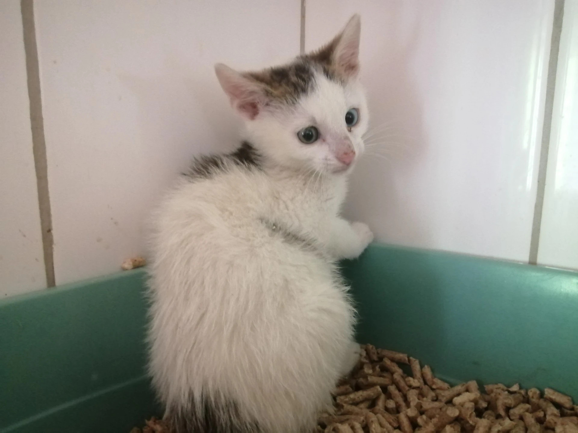 Santos je bílo mourovatý chlapeček odchycený v Kovokonu poblíž Letu Kunovice. Společně se svým bráškou Padouchem. Narozený cca v 6/2025, plašánek, aktuálně je v dočasce kde ho hodná paní po celý den učí věřit a mazlit. Na místě jsme odchytli víc kočiček ty byly vráceny zpět lidé jsou na ně hodní a starají se. Pokud nebude něco v pořádku dají vědět. Kocourek je plně očkovaný, odčervený.